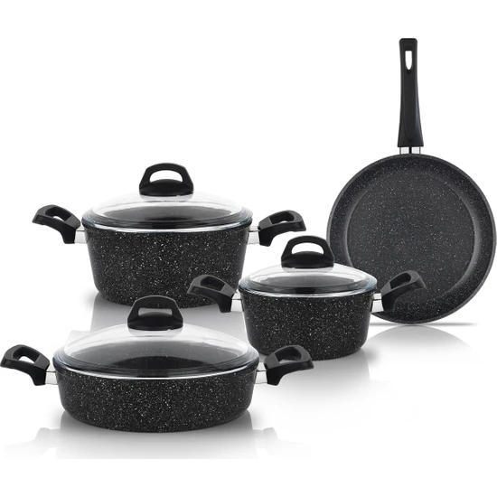 Schafer Stark 7 Parça Yanmaz Yapışmaz Tencere Seti Siyah